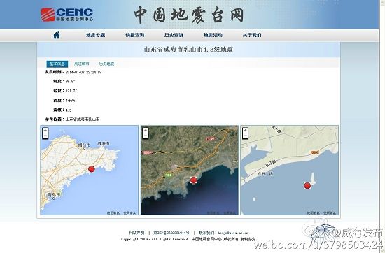 原标题:威海乳山发生4.3级地震 暂无破坏无人员伤亡
